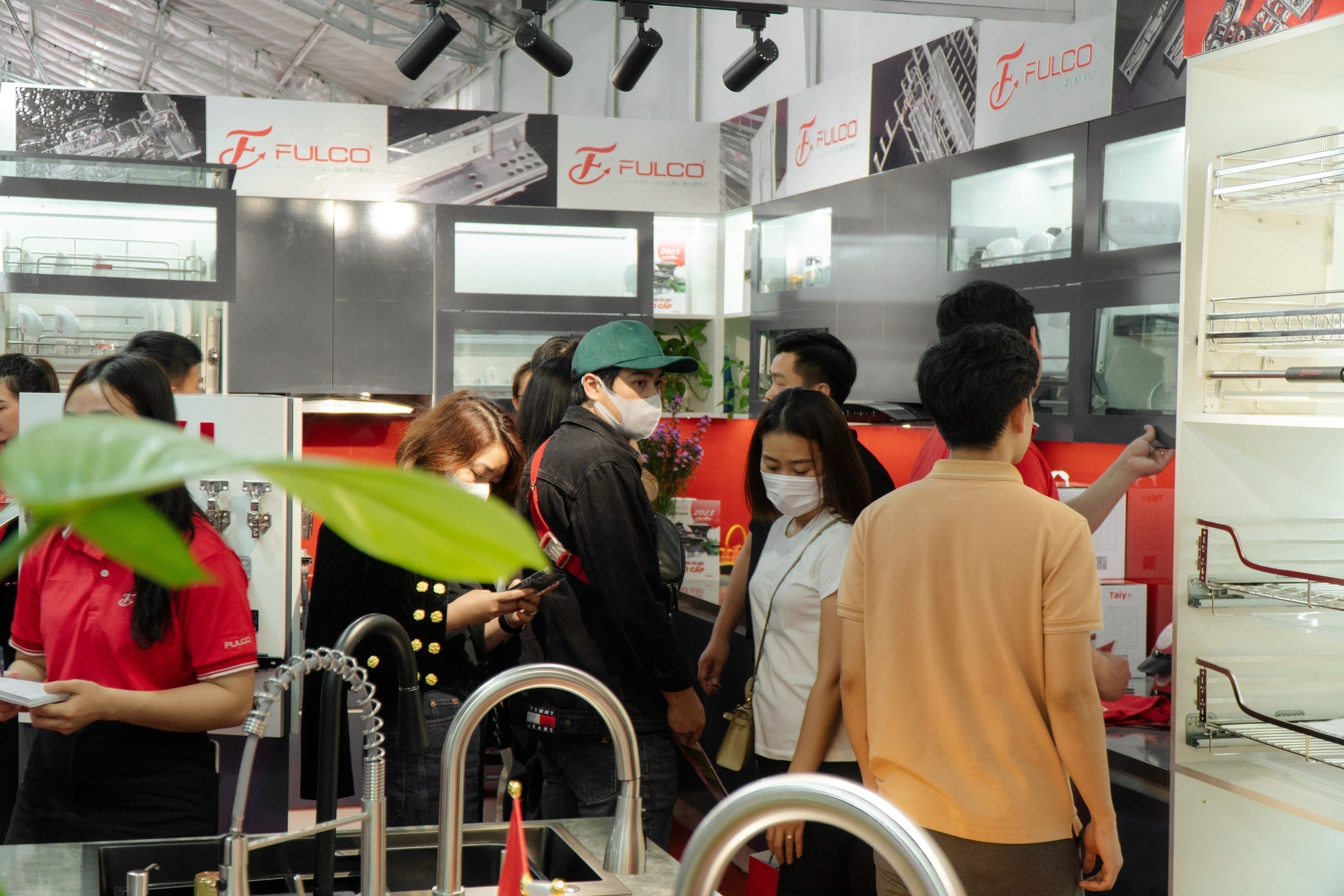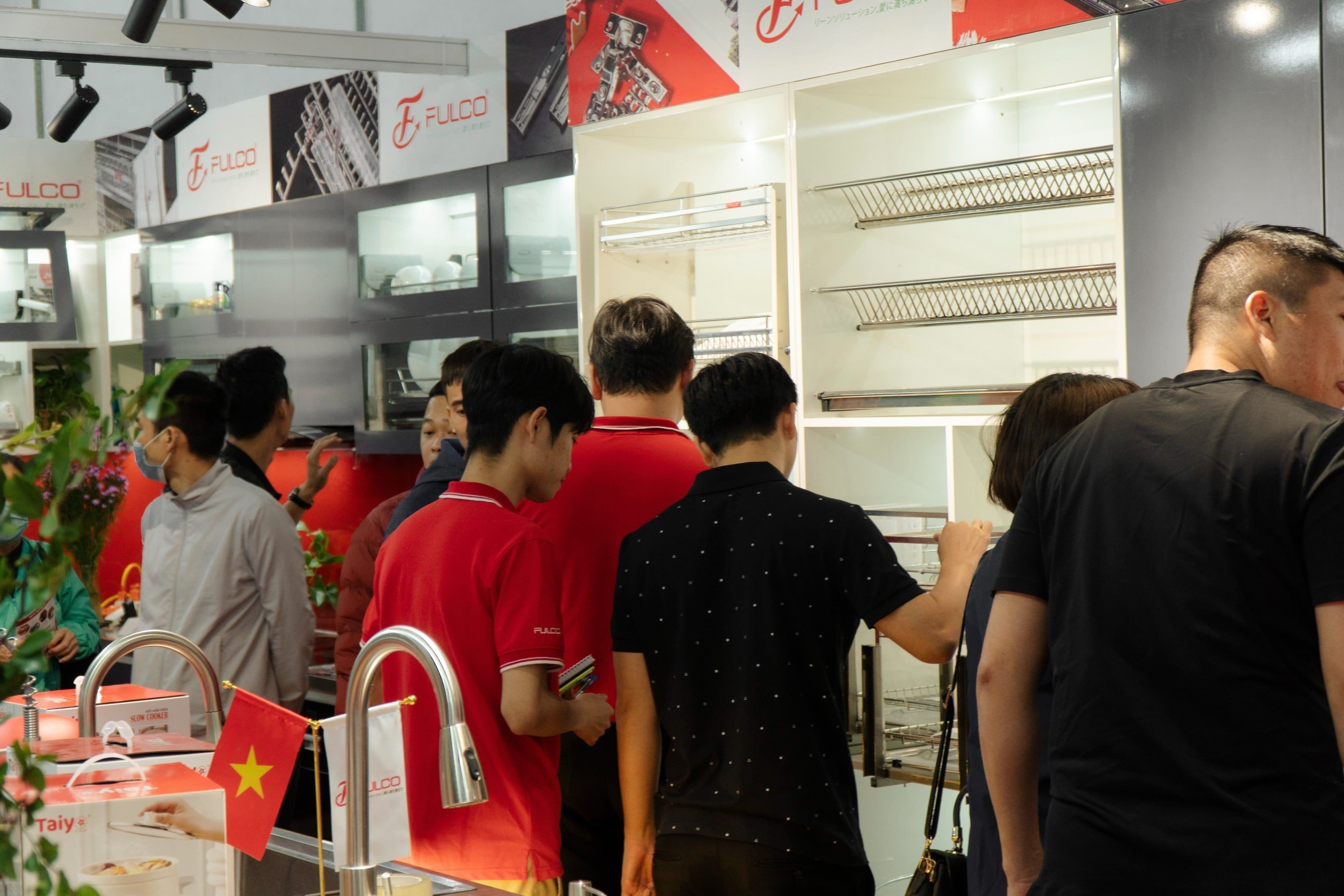 Đồng hành cùng triển lãm Vietbuild, Fulco xin giới thiệu tới khách tham quan gần 100 mã sản phẩm như: giá bát đĩa oval di động cao cấp, giá đựng chai lọ gia vị cao cấp, các phụ kiện tủ bếp Fuki (bản lề, ray bi,...)... Sản phẩm của Fulco luôn đa dạng về mẫu mã sản phẩm, mang tính thẩm mỹ cao và đảm bảo kiểm định chất lượng, an toàn cho người tiêu dùng.