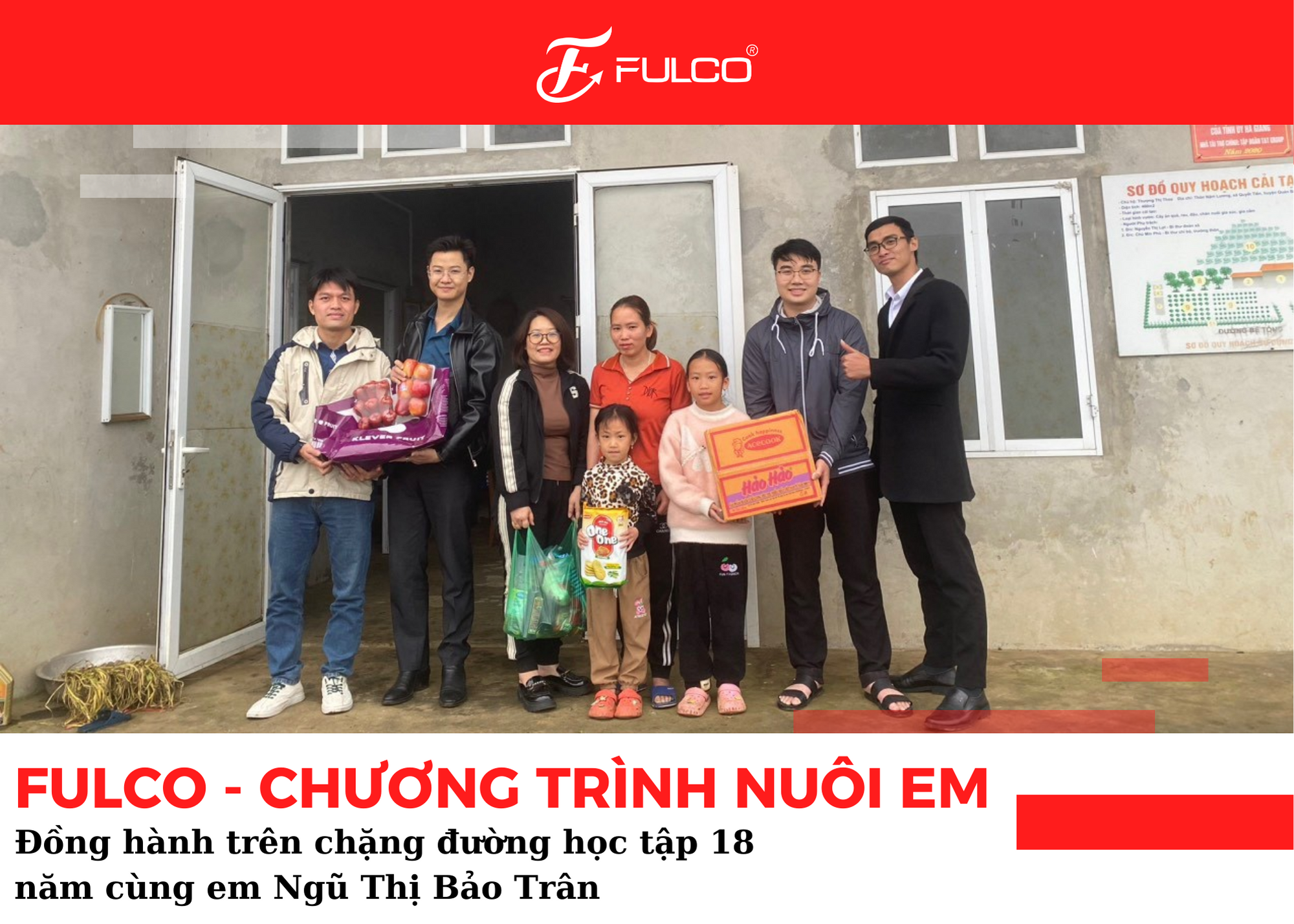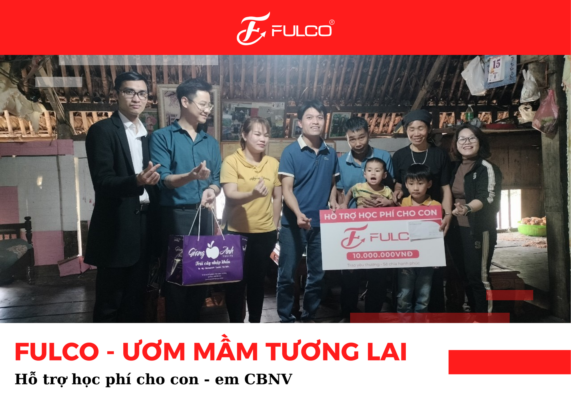 Cùng FULCO đến thăm và trao những phần quà đến những hoàn cảnh khó khăn. Món quà như là sự khích lệ của công ty dành cho chị và gia đình. Chúc các con chăm ngoan, học giỏi