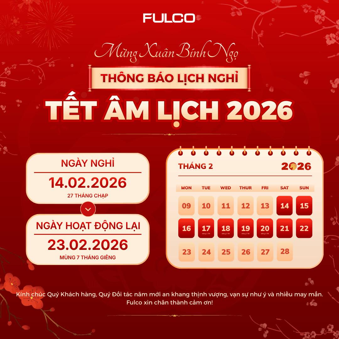 Tiếng pháo giao thừa đã điểm, năm mới đã chính thức gõ cửa từng nhà. Vậy là 2025 đã chính thức khép lại, chúng ta lại cùng nhau đón một năm mới với biết bao hy vọng về khởi đầu may mắn và những dự định tốt đẹp trong năm mới 2026. Fulco xin trân trọng cảm ơn Quý khách hàng, Quý đối tác đã luôn tin tưởng và đồng hành cùng chúng tôi trong suốt thời gian qua.