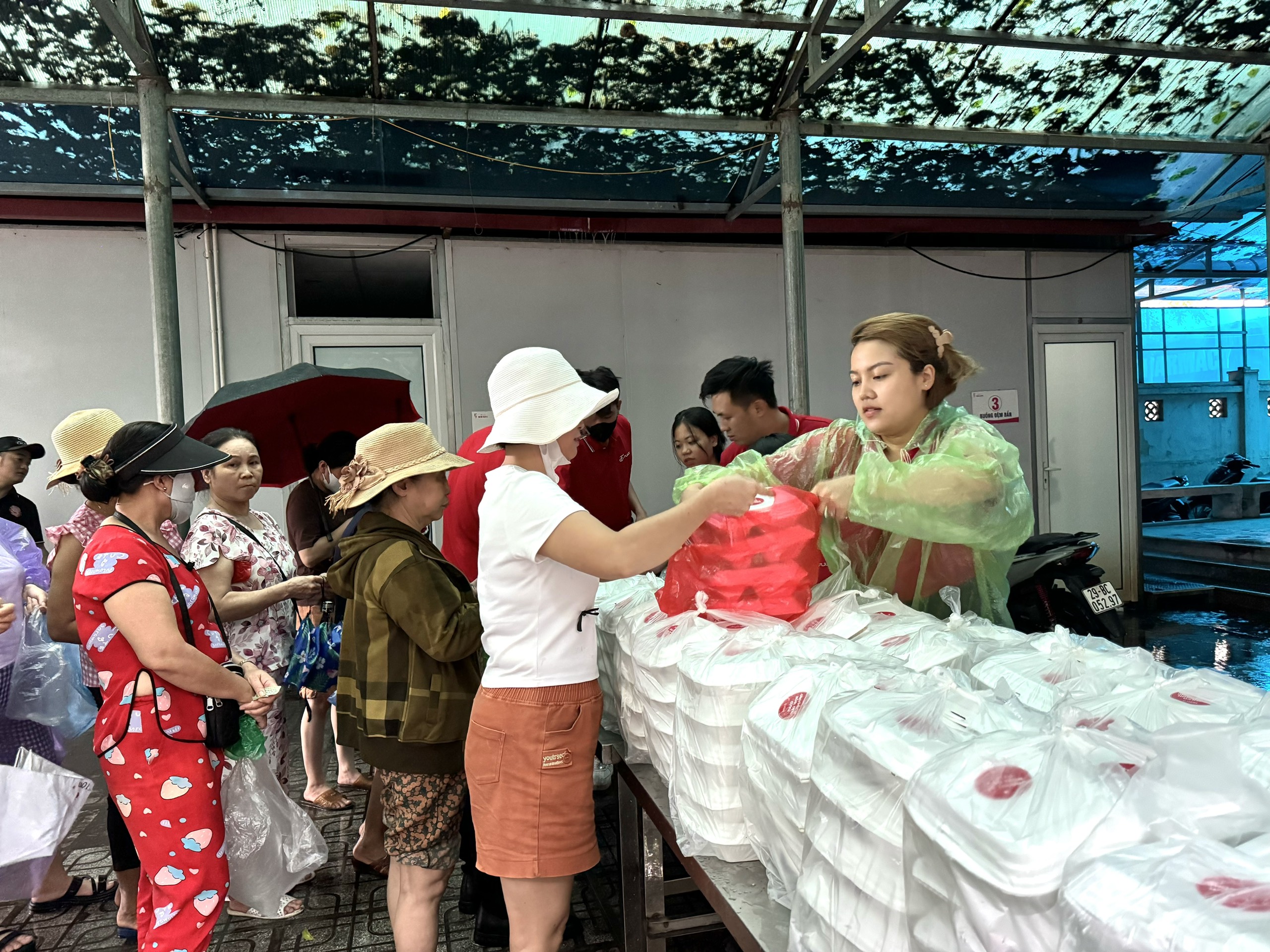 Fulco dành tặng những suất cơm đến người nhà bệnh nhân tiếp sức giúp cho bệnh nhân mau khỏe.