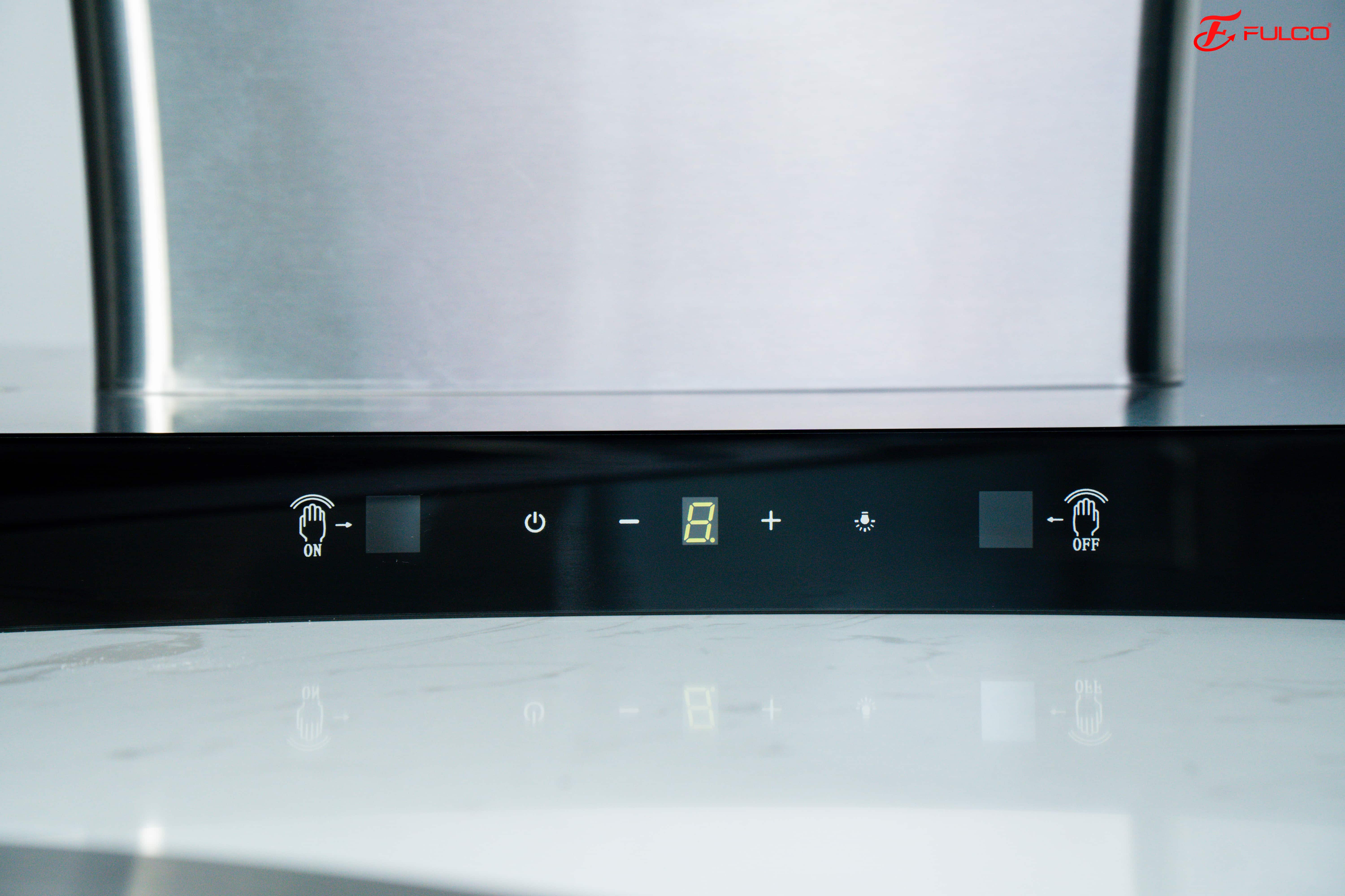 Bảng điều khiển cảm ứng có các phím bật/ tắt máy, điều chỉnh công suất, đèn chiếu sáng và phím hẹn giờ. Với màn hình đèn Led hiển thị rõ ràng giúp người dùng thao tác và sử dụng dễ dàng hơn. Không chỉ chạm nhẹ để sử dụng, với con mắt cảm biến siêu thông minh, người dùng chỉ cần khua nhẹ tay qua mắt cảm biến là có thể mở máy hút cũng như điều chỉnh 3 chế độ hút của máy, siêu tiện lợi và hiện đại.