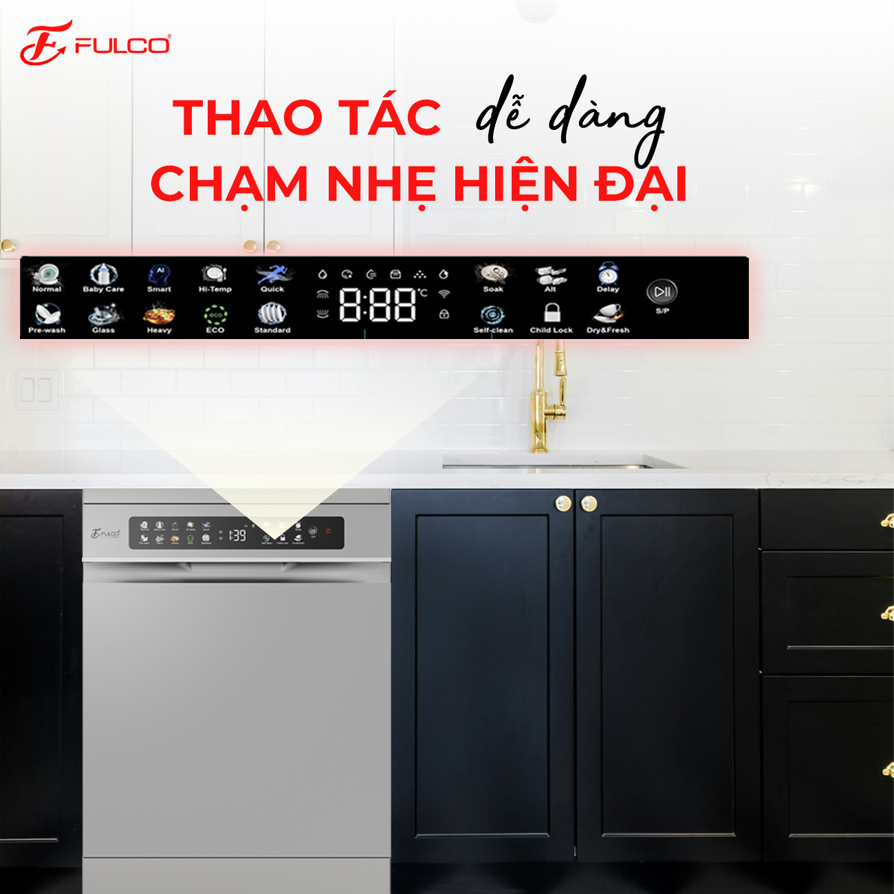 Máy rửa bát Fulco với 12 chương trình rửa, có thể đáp ứng mọi nhu cầu của gia đình bạn