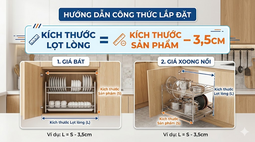 Công thức lắp đặt Giá bát và Giá xoong nồi